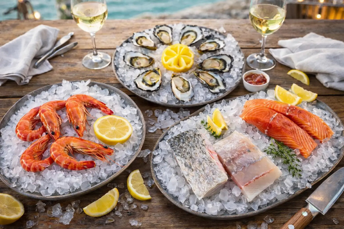 Start with freshly shucked oysters and chilled tiger prawns as appetisers. Pan-sear the salmon until golden and crisp, and cook the barramundi simply with lemon and butter. Pair with a crisp white wine for an effortless seafood feast.
